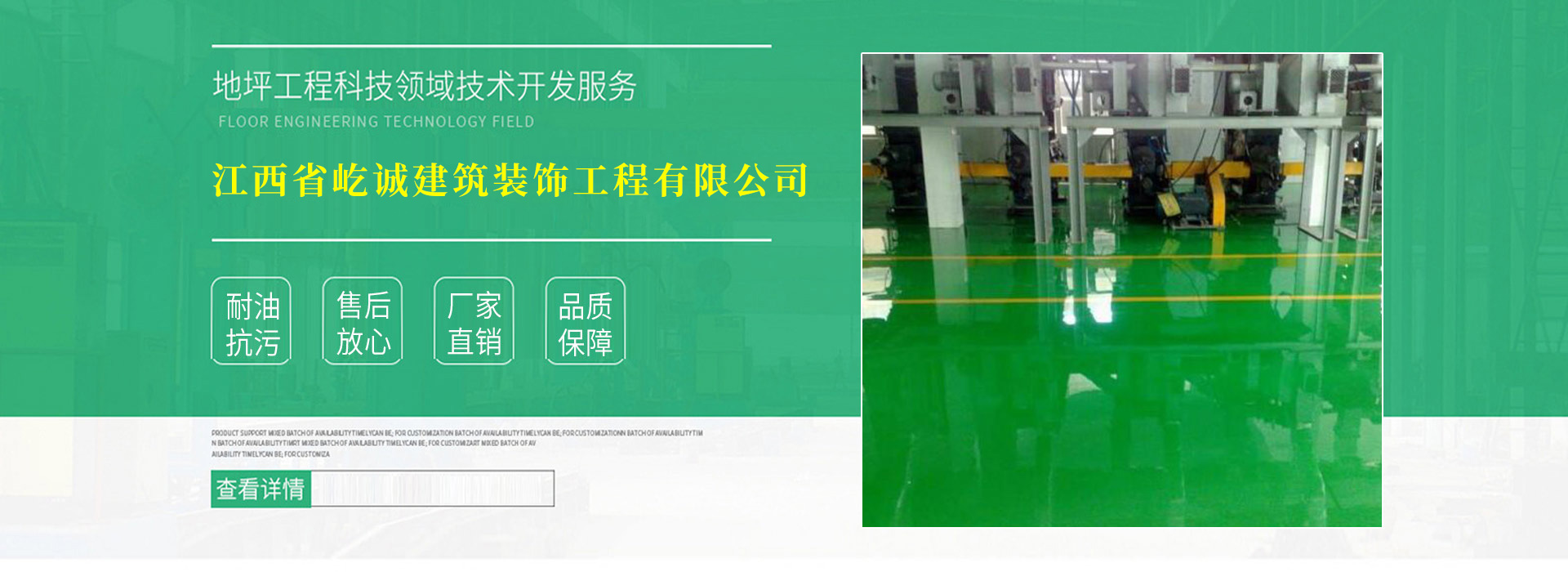 江西省屹誠建筑裝飾工程有限公司銷(xiāo)售和施工工業(yè)地坪,供應各類(lèi)要求的地坪材料和相應工程施工服務(wù)。 江西省屹誠建筑裝飾工程有限公司從廣東沿海地區引進(jìn)好的的原材料、設備和施工經(jīng)驗,立足于江西贛西,營(yíng)銷(xiāo)網(wǎng)絡(luò )廣,先后在廣東、湖南、江西、廣西等地施工制作了上大的地坪,其中有適用于在電子、制藥、食品、服裝、紡織、微機房、 半導體、 計算機機房、通信中心機房、各種電氣控制機房、郵電樞紐及指揮中心、航天、通訊、印刷、兵工、化工、醫療及科研等領(lǐng)域的環(huán)氧(EPOXY)地坪,導靜電地坪,高潔凈的環(huán)氧自流平地坪;有適用于倉庫、碼頭、修理場(chǎng)地、車(chē)間、道路及使用要求硬度較高的金剛砂地坪;有適用于在電子、化工、電鍍、酸堿儲存池、排污水道、污水處理池的各類(lèi)防腐工程及體育場(chǎng)跑道、球場(chǎng)、健身中心、幼兒園及各類(lèi)康體工程。